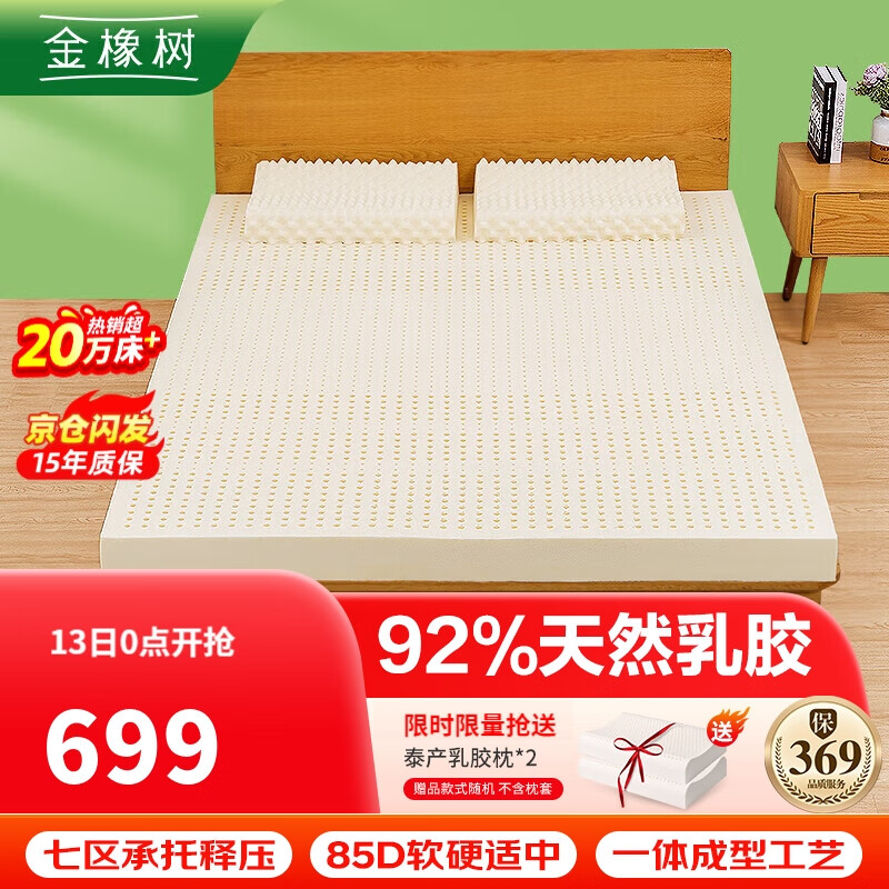 3、原本床上是棕垫,太硬,加了个5公分的乳胶,效果显著!金橡树是朋友推荐的牌子,这款性价比高,包装送货什么的都很给力,京东小哥甚至建议直接给我铺床上,棒棒哒实际睡了几天,无异味,送的枕头也是一样好品质,满意!