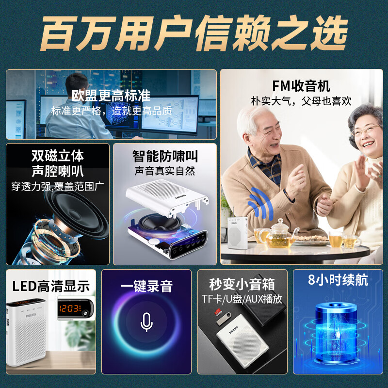 飞利浦(PHILIPS)SBM210 小蜜蜂扩音器便携插卡音箱收音机会议扬声器麦克风喇叭喊话教师导游户外教学讲课象牙白价格:329.00元!