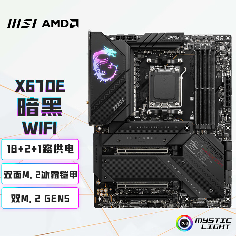 微星(MSI)MPG X670E CARBON WIFI DDR5暗黑电脑主板 支持CPU7950x3D/7900x3D/7800x3D (AMD X670E/AM5接口)价格:2799.00元!
