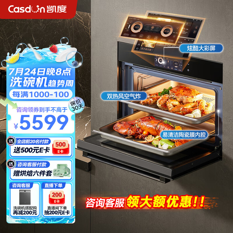 凯度(CASDON)60L彩屏蒸烤一体机嵌入式 蒸箱 烤箱 双热风 蒸烤炸蒸烤箱一体机SR6028FE13-ZD Pro一代价格:6199.00元!