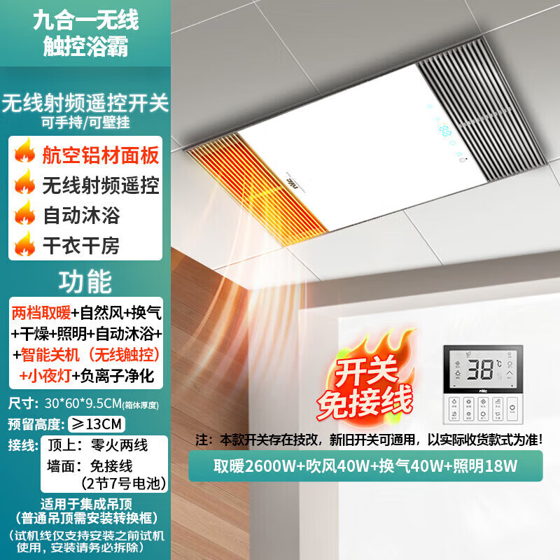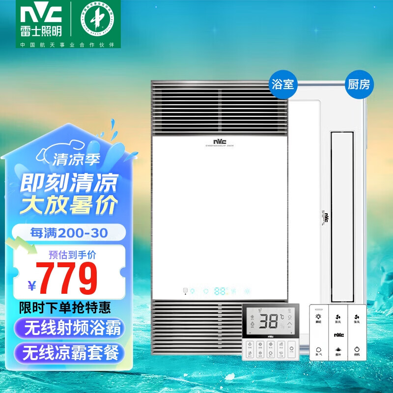 雷士(NVC)智能型材风暖浴霸排气照明一体卫生间暖风机浴室+凉霸套餐B价格:999.00元!