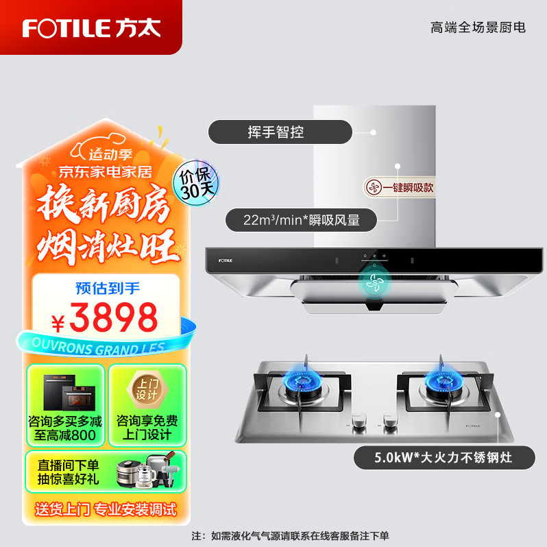 方太(FOTILE)抽吸油烟机烟灶套装 燃气灶欧式顶吸烟机灶具套装家用22瞬吸风量EMC5A+02-TH25G天然气/液化气价格:3898.00元!