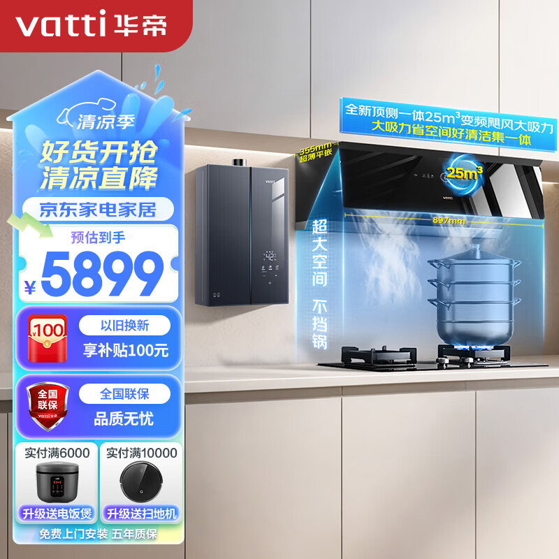 华帝(VATTI)16L水伺服静音下置风机燃热25风量变频大吸力油烟机5.0kW燃气灶多件套装 A2+72B+G5(天然气)价格:5899.00元!