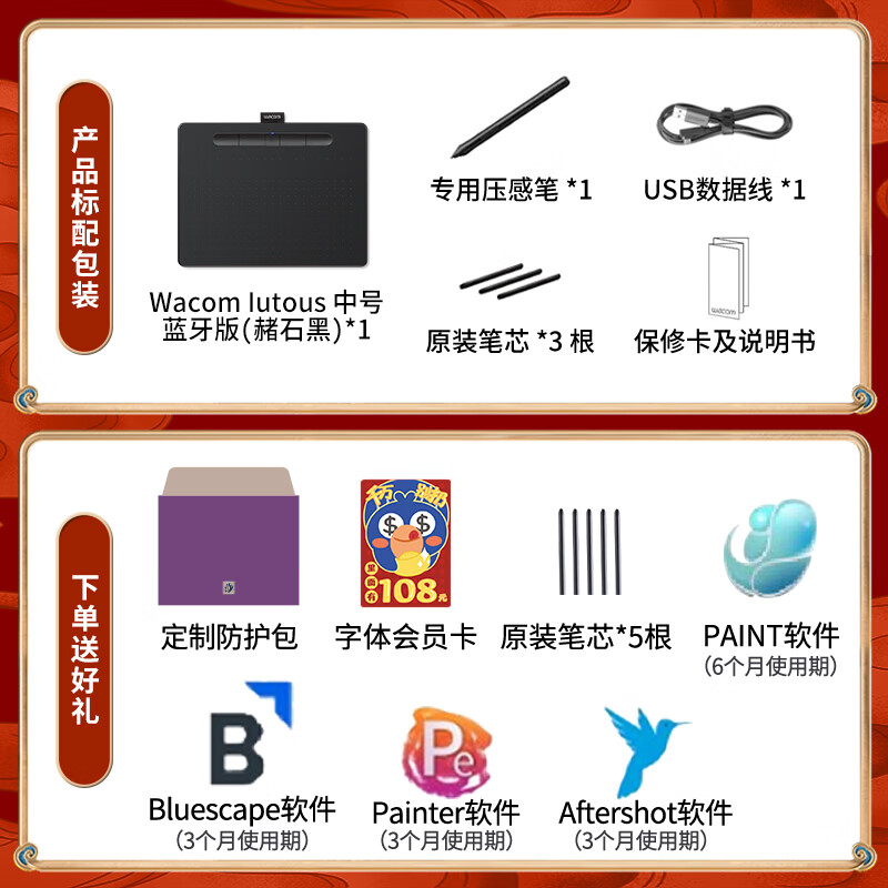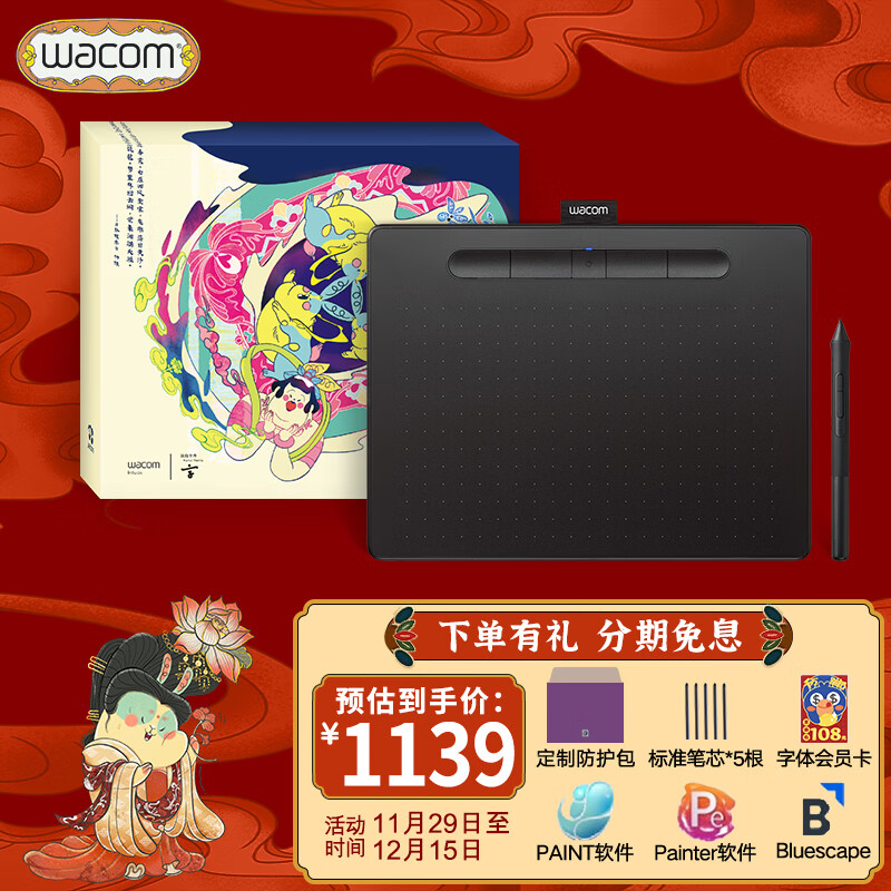 Wacom 和冠 影拓intuos数位板 手绘板 电脑网课手写板 电子绘画板 电脑绘图板 写字板 CTL-6100WL蓝牙版 赭石黑价格:1199.00元!