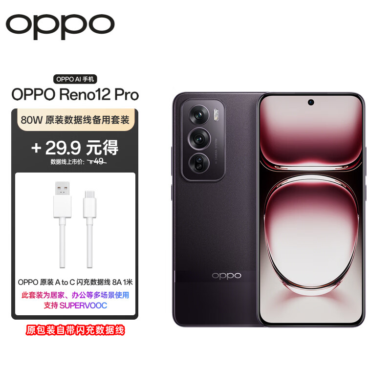OPPO Reno12 Pro 12GB+256GB乌木黑 超美小直屏 天玑9200+星速版旗舰芯手机【80W原装数据线备用套装】价格:3428.90元!