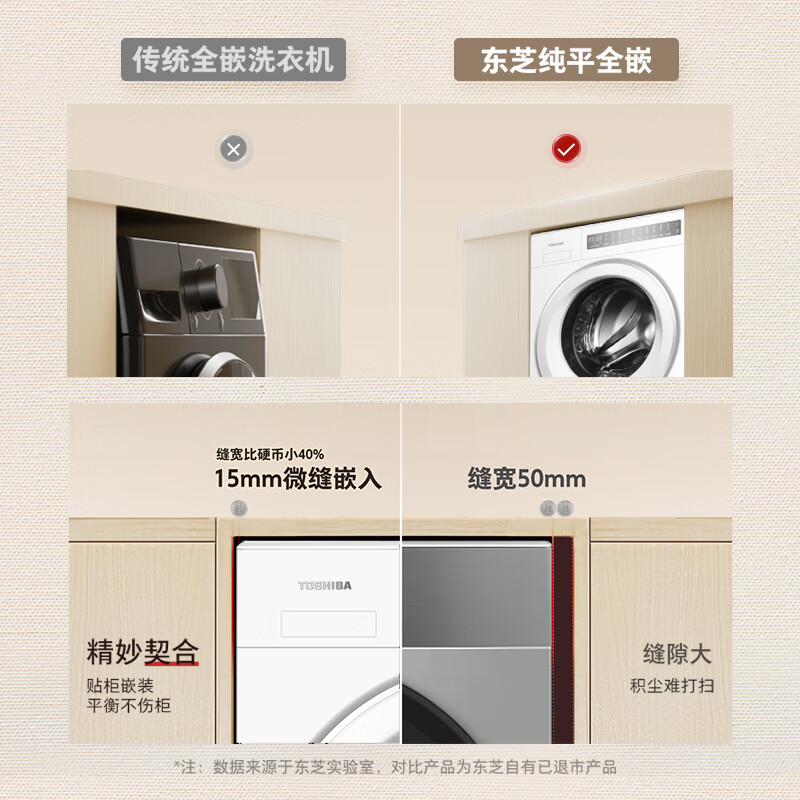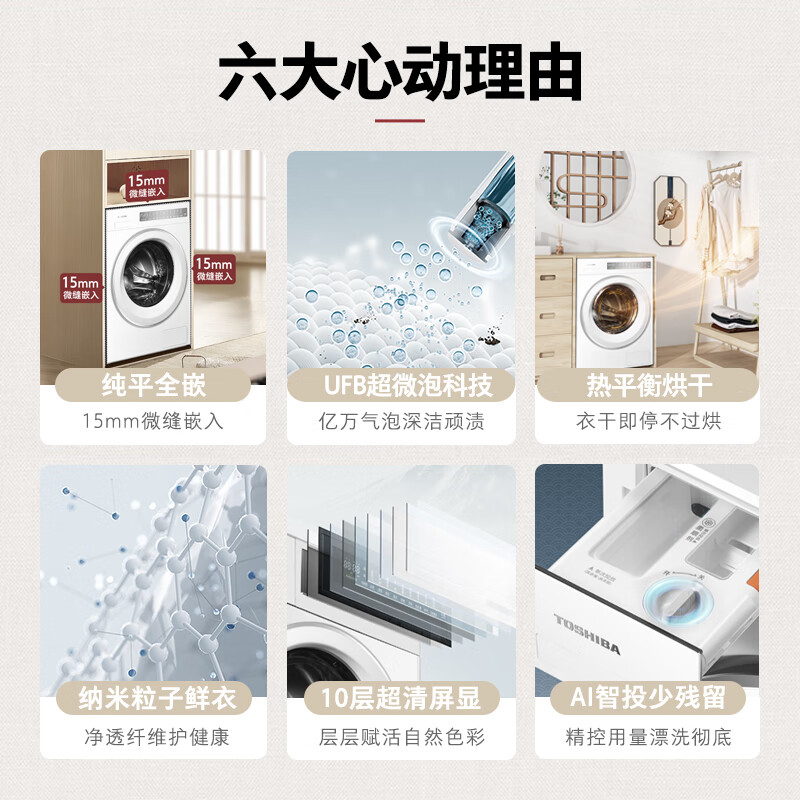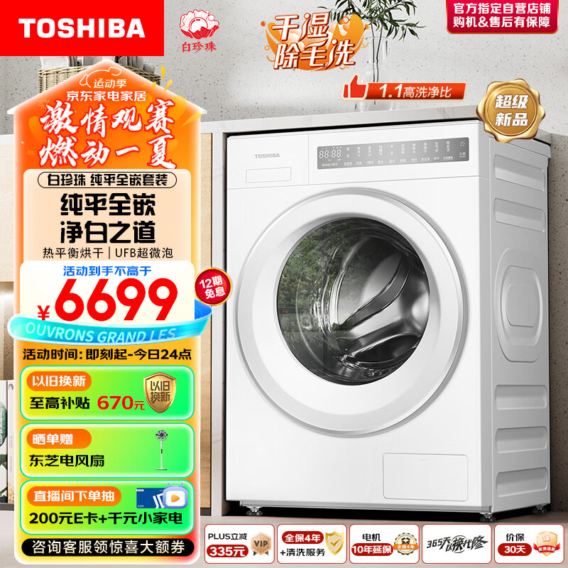 东芝(TOSHIBA)滚筒洗衣机全自动【白珍珠DD-107T23B】洗烘一体机 纯平全嵌 10公斤大容量 智能投放价格:6699.00元!