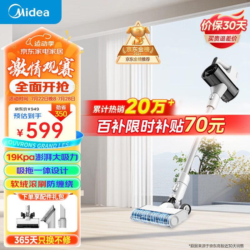 美的(Midea)吸尘器家用无线Q3 洗地机吸拖一体机 大吸力吸尘器除螨仪 手持宠物除螨刷价格:599.00元!