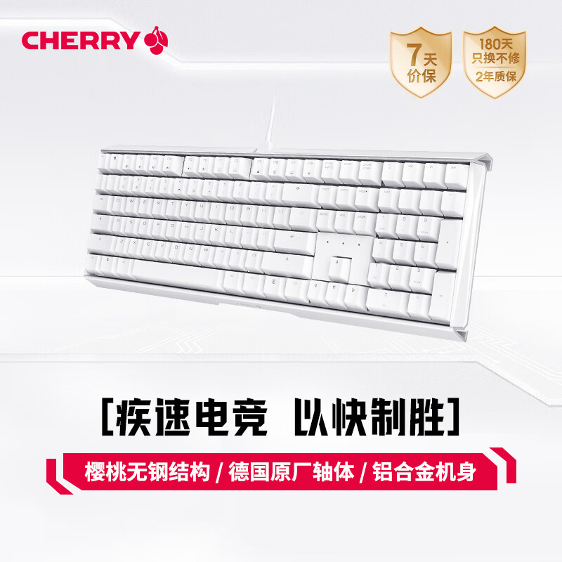 CHERRY樱桃 MX3.0S机械键盘 游戏键盘 电竞键盘 办公电脑键盘 有线全尺寸 铝合金外壳 无钢结构 白色红轴价格:529.00元!