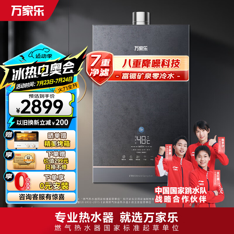万家乐18升零冷水燃气热水器水伺服恒富锶矿泉瀑布洗降噪天然气家用双效增压JSQ34-18RL9以旧换新价格:2899.00元!