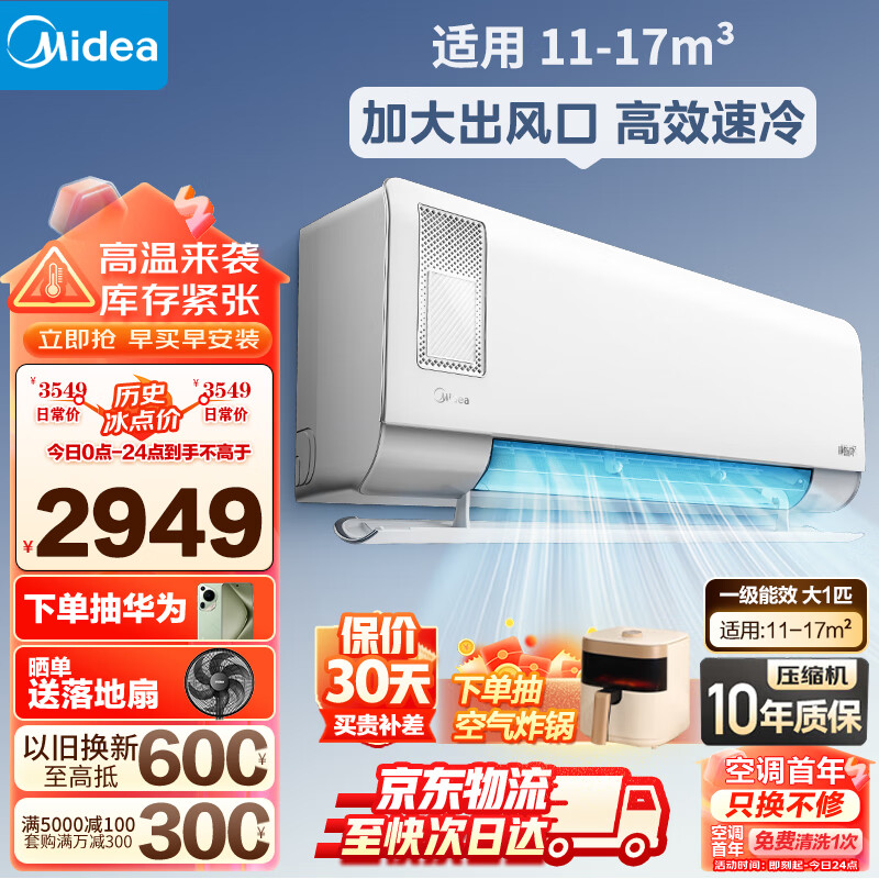 美的(Midea)新风空调挂机大1匹 新一级能效 变频冷暖卧室家用壁挂 空调挂机 智能家电KFR-26GW/N8XF1-1价格:2949.00元!