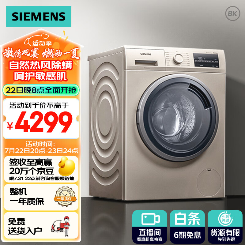 西门子(SIEMENS)9公斤滚筒洗衣机全自动带烘干 洗烘一体 99.99%除菌 专业羽绒洗 防敏护肤 智能烘干 WN42A1X31W价格:4571.20元!