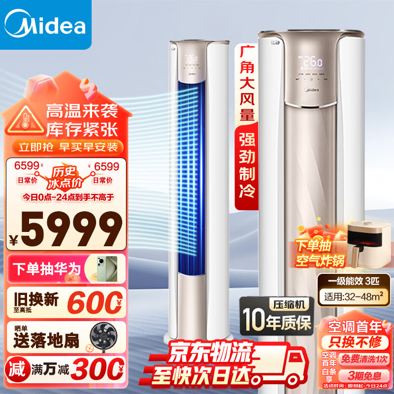 美的(Midea)锐静一级3匹空调变频柜机立式客厅冷暖两用制冷制热大风口空调家电以旧换新72VHC1Ⅱ【锐云升级】价格:5999.00元!