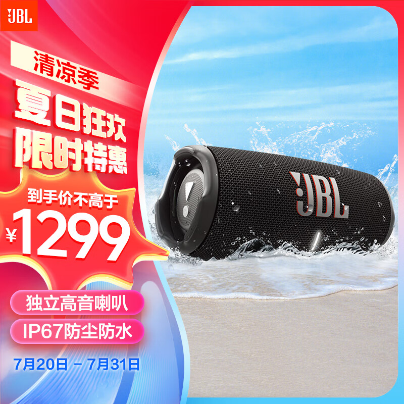 JBL CHARGE5 音乐冲击波五代 便携式蓝牙音箱+低音炮 户外防水防尘 桌面音响 增强版赛道扬声器 黑色价格:1499.00元!