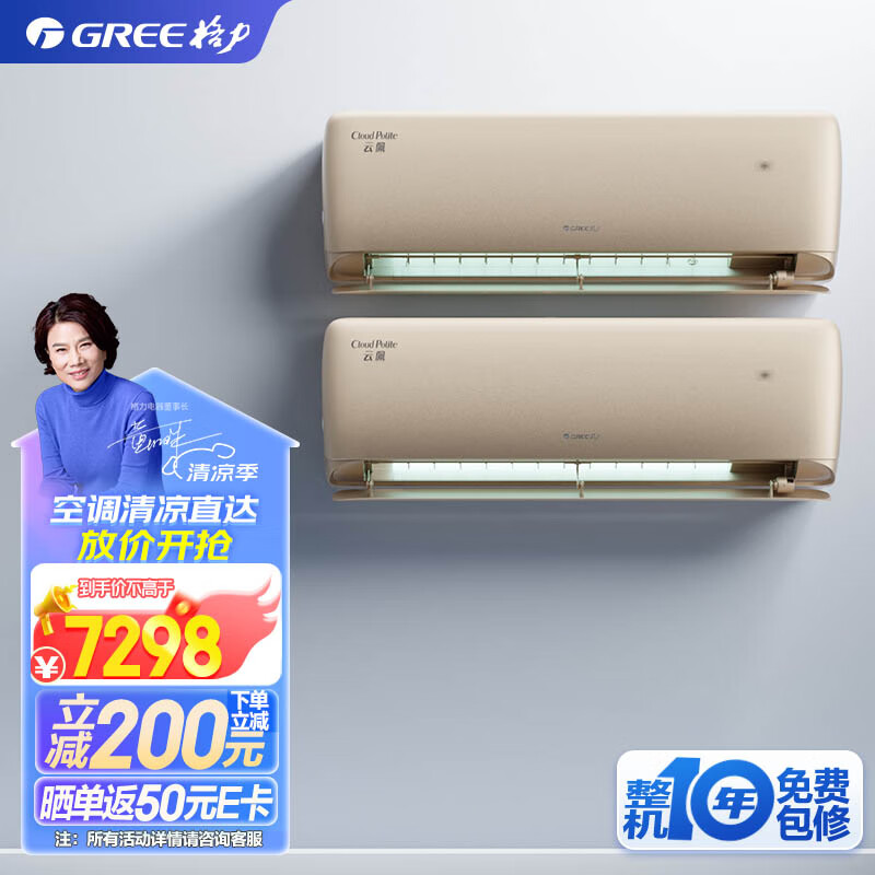 格力(GREE)新一级能效 自清洁 智能空调组合套装(1匹云佩挂机+1.5匹云佩挂机)价格:7498.00元!
