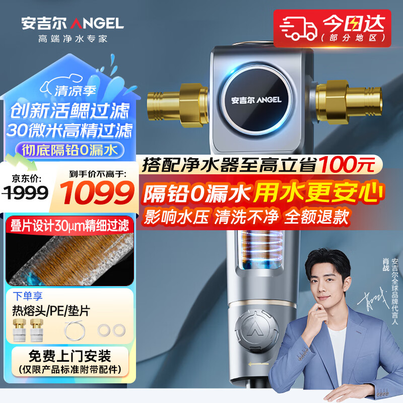 安吉尔前置鱼鳃过滤器 6T大通量 30μm精滤仿鳃叠片 2倍抗污堵旋转冲洗家用 净水器 J3423-SDG-4000价格:1099.00元!