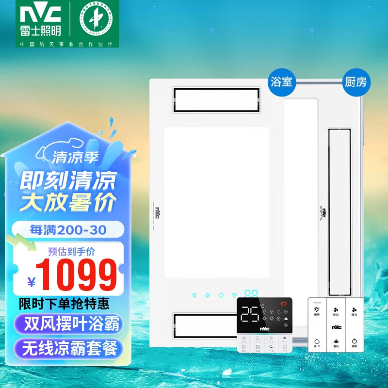 雷士(NVC)双风口取暖/换气/定向摆风浴霸排气扇照明一体+凉霸套餐A价格:1379.00元!