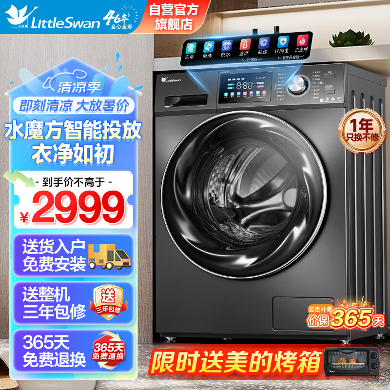 小天鹅(LittleSwan)滚筒洗衣机全自动 10公斤大容量家用 水魔方 智能投放 双重除菌 超薄彩屏 以旧换新 87升级款价格:2999.00元!