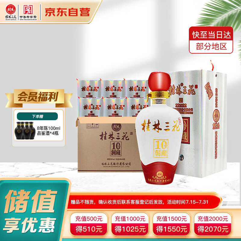桂林三花酒 10年洞藏米香型白酒52度500ml*6瓶整箱装 广西送礼白酒价格:1722.00元!
