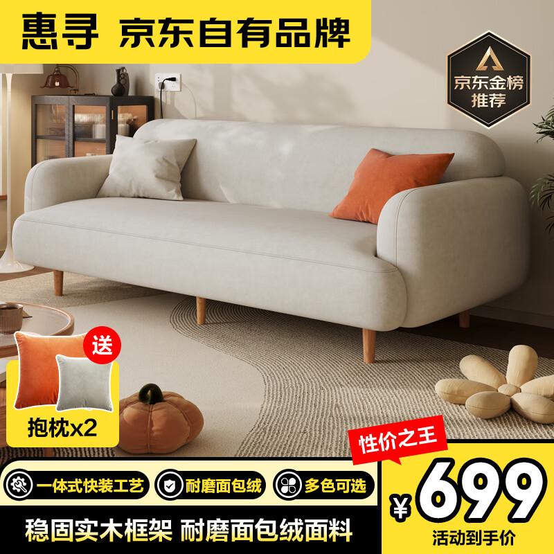 惠寻 京东自有品牌 绒面布艺沙发小户型客厅直排 三人位2.1米价格:729.00元!