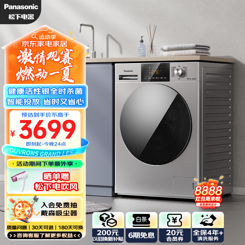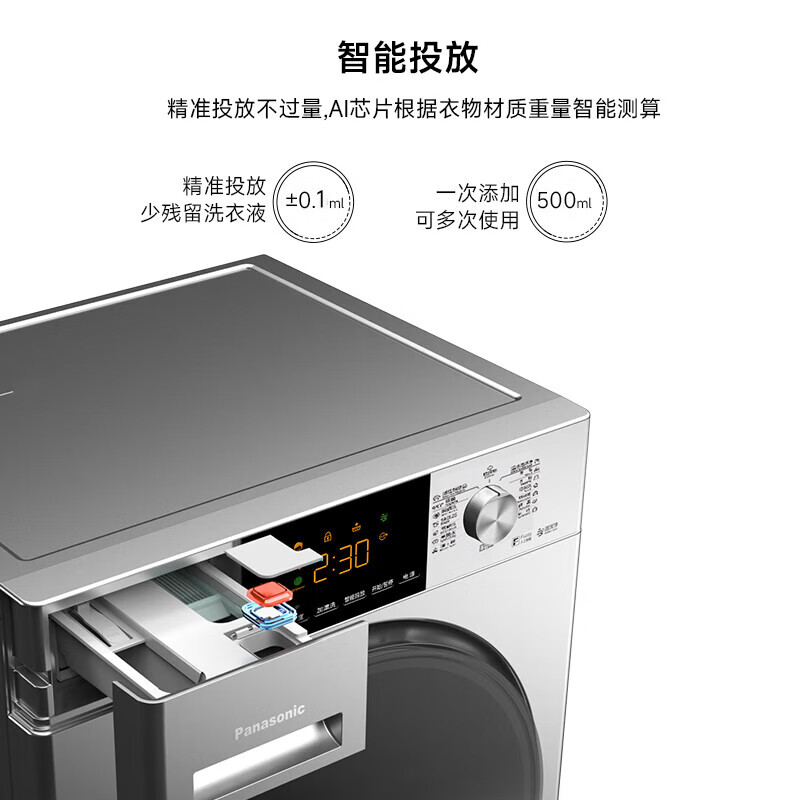 松下(Panasonic)滚筒洗衣机全自动 超薄全嵌 10公斤 智能投放 活性银除菌 温水泡沫净 除螨洗XQG100-811M价格:3699.00元!