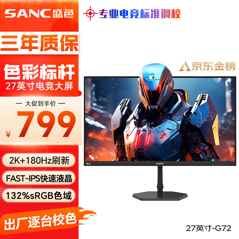 SANC 27英寸 2K原生180Hz电竞屏 Fast IPS 1ms快速液晶 广色域10bit 低蓝光电脑屏幕小金刚G72价格:999.00元!