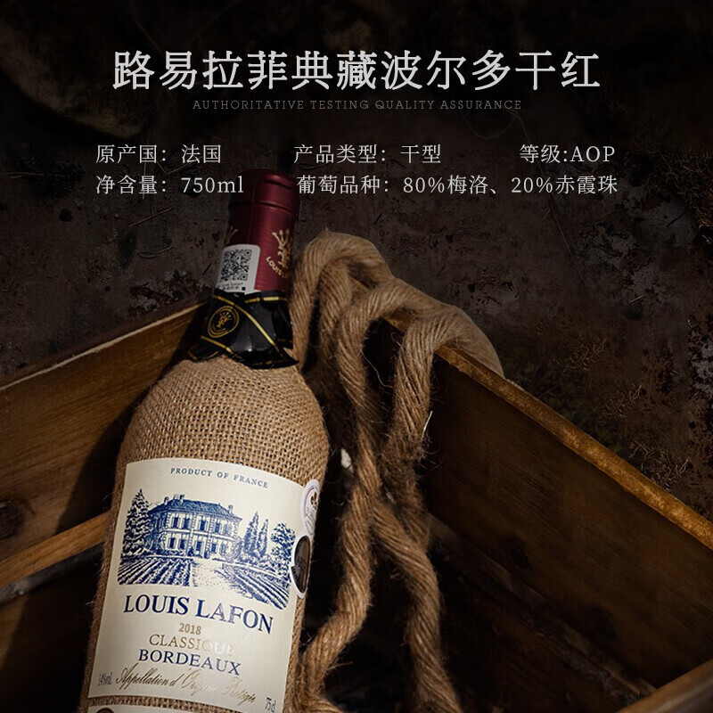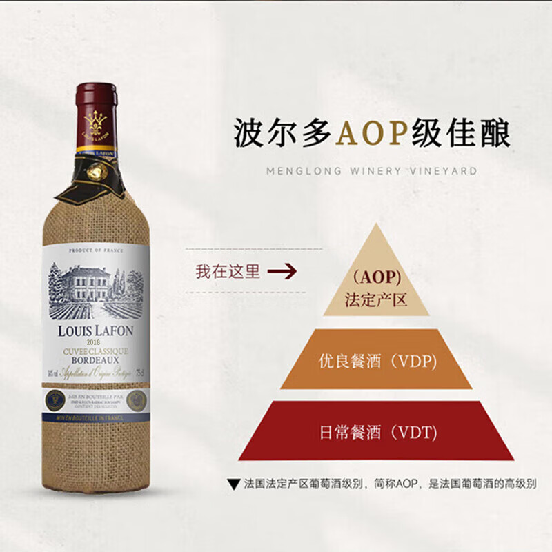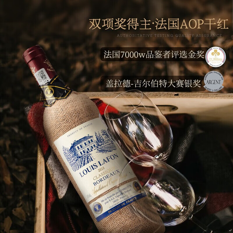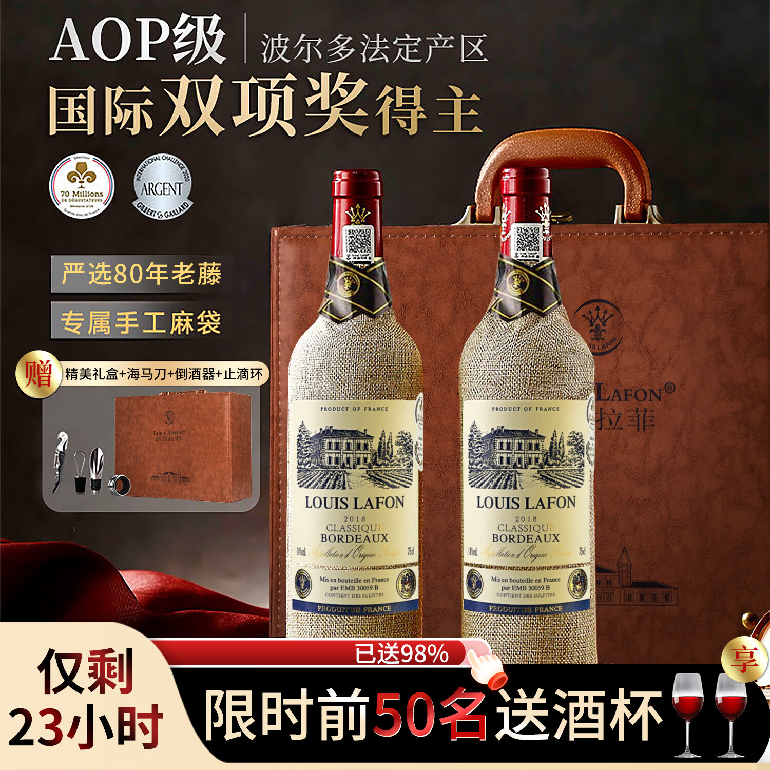 路易拉菲(LOUIS LAFON)法国原瓶进口红酒AOP波尔多干红葡萄酒 750ml*2瓶双支红酒礼盒装价格:398.00元!