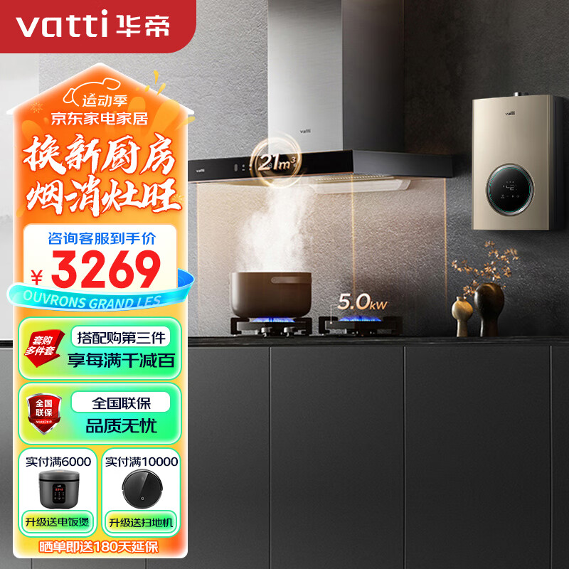 华帝(VATTI)抽油烟机 欧式顶吸燃气灶具热水器套装 家用厨房三件套 挥手智控i11176+72B+104-12(天然气)价格:3269.00元!