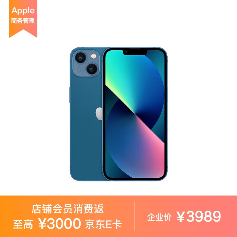 Apple iPhone 13 128GB 蓝色 ( A2634 ) 手机 支持移动联通电信5G MLDY3CH/A*企业专享价格:3999.00元!