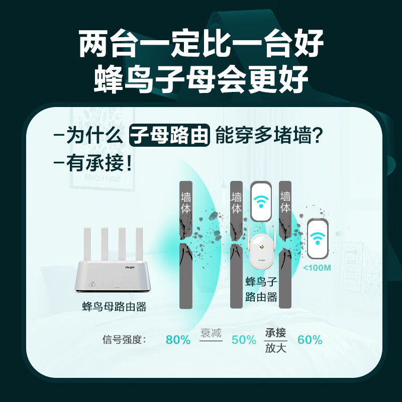 锐捷蜂鸟H20M(1+2)子母套装路由 大户型路由 全屋路由wifi 即插即用 mesh组网套装价格:919.00元!