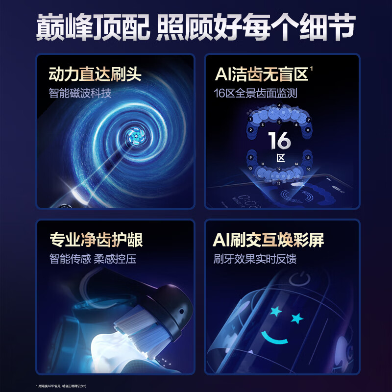 特征特质:蓝牙连接,感应,换刷头提醒,APP漏刷检测,过压提醒