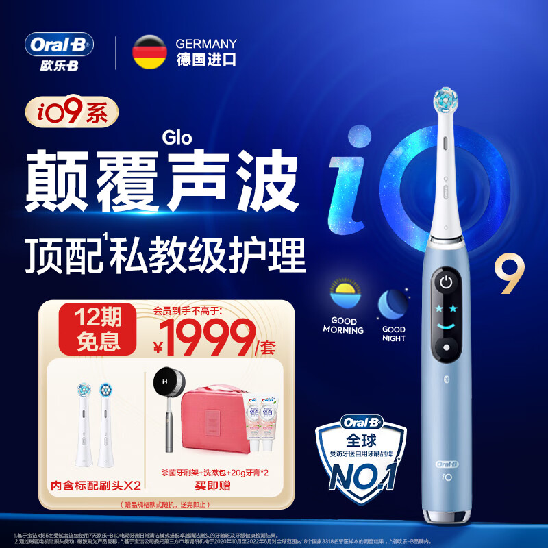 欧乐B成人电动牙刷iO9AI全景磁波刷iO系列圆头深度清洁牙龈按摩智能护龈送男友送女友送礼赠七夕节礼物价格:2279.00元!