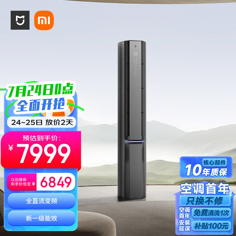 小米3匹 超一级能效 新风Pro双出风 245m3/h大新风量 新风空调 变频冷暖 空调柜机 72LW-NA11/F1A1价格:7999.00元!
