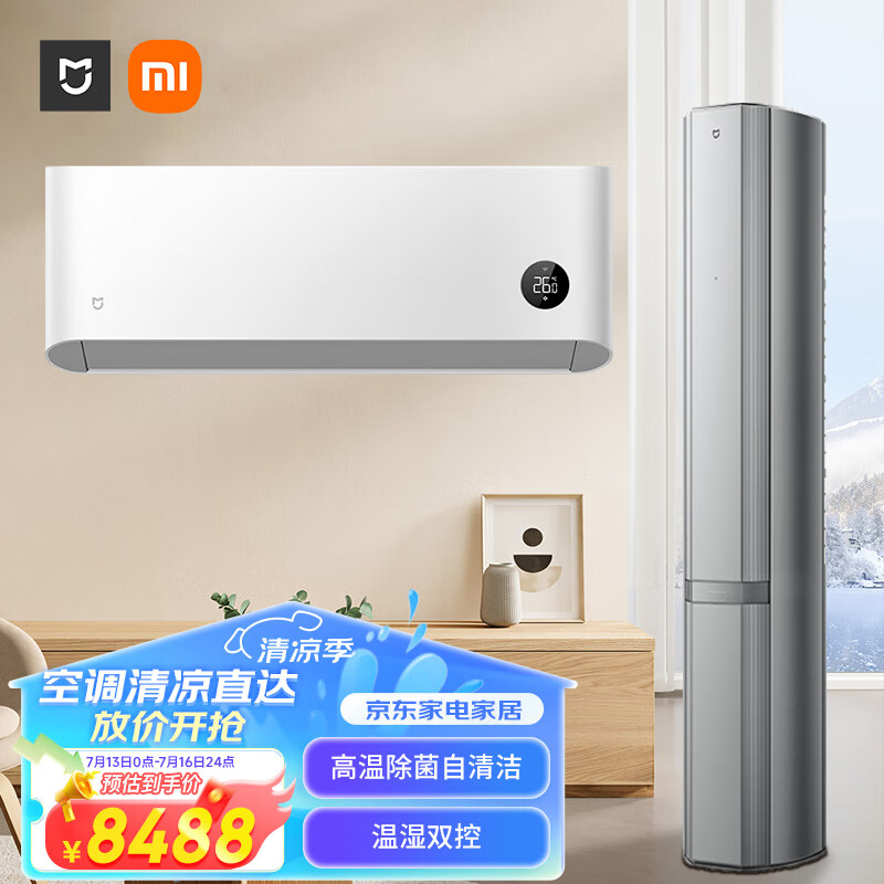 小米【套装一柜一挂】自然风星缎银3匹一级柜机+1.5匹巨省电Pro一级挂机 变频冷暖价格:8388.00元!