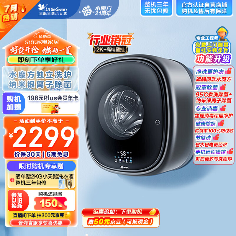 小天鹅(LittleSwan)壁挂洗衣机TG30V860EPRO 小海绵 3KG迷你滚筒洗衣机全自动 儿童婴儿洗衣机小型 挂壁式 水魔方价格:2299.00元!