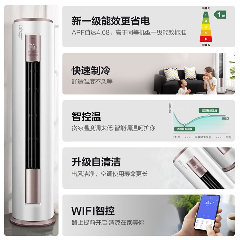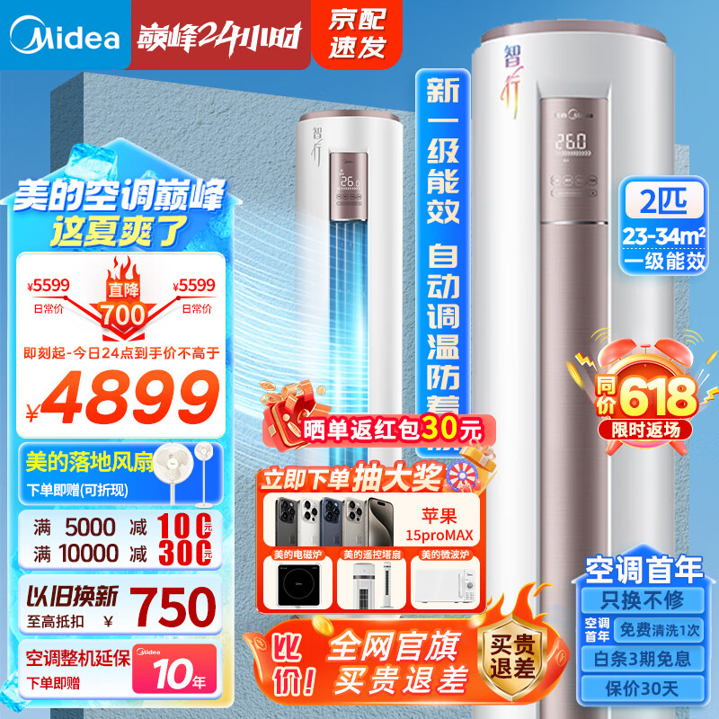 美的(Midea)空调柜机 2匹 智行 新一级能效 立式圆柱式客厅空调 智能家电 节能省电 KFR-51LW/BDN8Y-YH200(1)A价格:4899.00元!