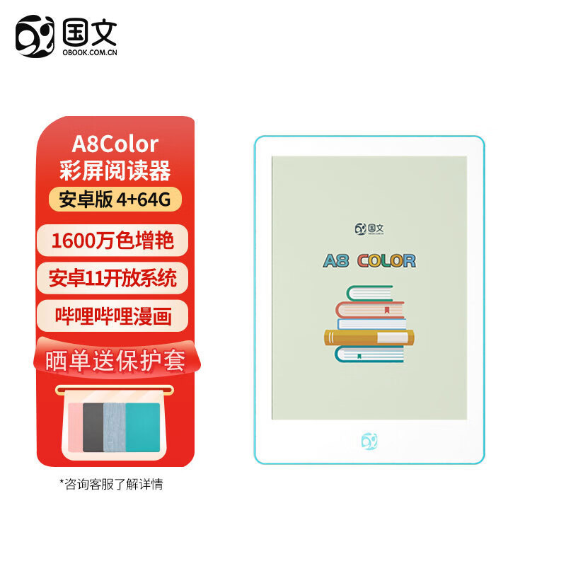 国文A8Color彩色墨水屏阅读器6英寸便携安卓开放系统电纸书看漫画小说电子书阅览器(4+64G)价格:999.00元!