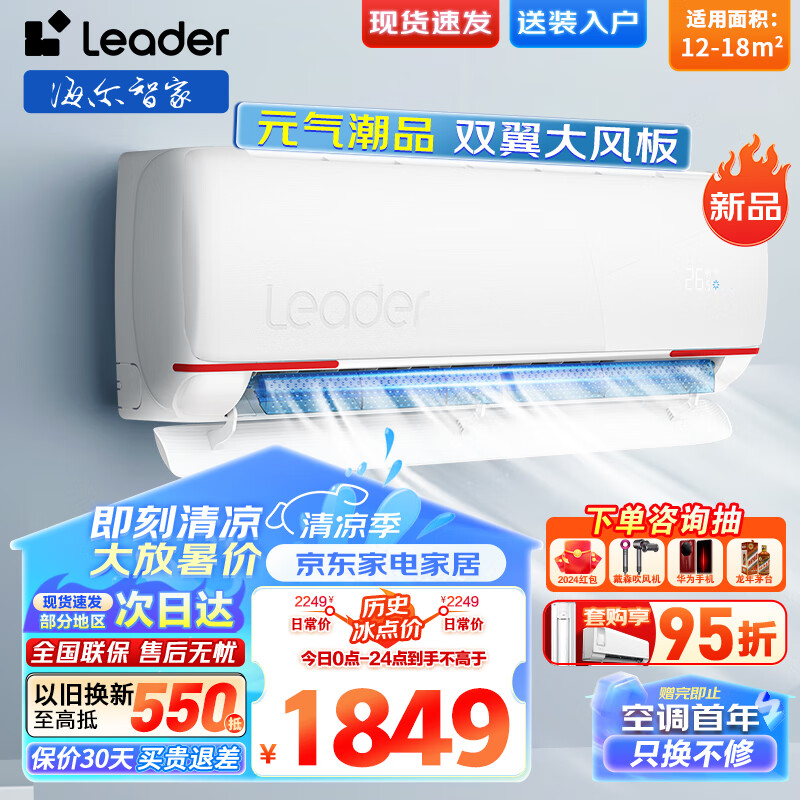 统帅(Leader)空调1匹挂机海尔智家出品大一匹空调新一级能效变频冷暖自清洁壁挂式家用 KFR-26GW/05LKG81TU1价格:1849.00元!