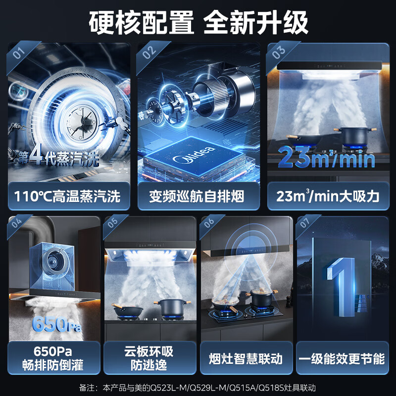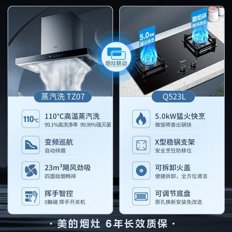 美的(Midea)抽油烟机灶具套装 家用厨房23大吸力欧式顶吸烟机蒸汽洗 烟灶联动套装TZ07+Q523L天然气价格:3399.00元!