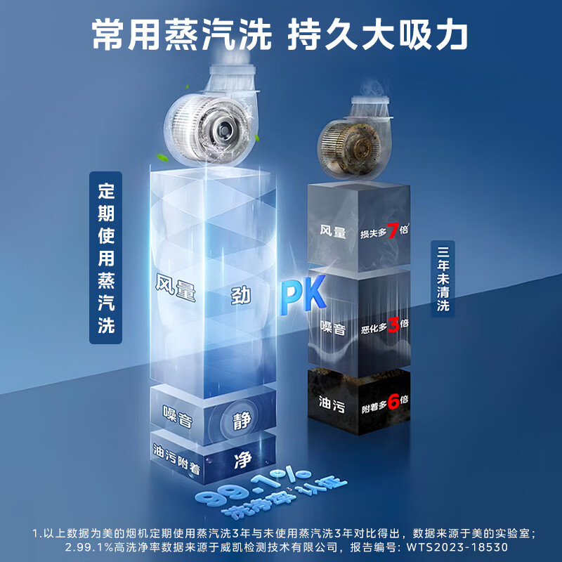 3、外形外观:简约好看,比以前的中式油烟机清爽很多排烟效果:吸力大了非常多,告别油烟弥漫的日子清洗难度:可以用水自动清洗,太方便啦噪音程度:声音不大,在自动档位下噪音控制很智能