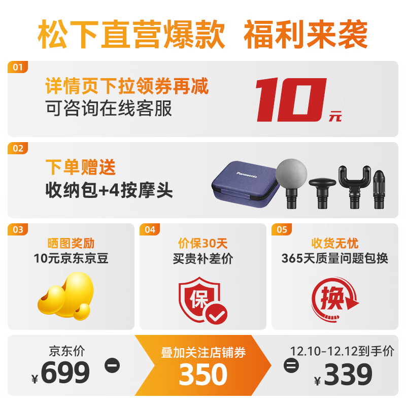 1、家里不少电器都是松下,质量都非常可靠,这次买筋膜*,看见松下有产品,毫不犹豫就下手了,有4种不同的头,换头也很方便,捶打效果很好,家人们都感觉很好!