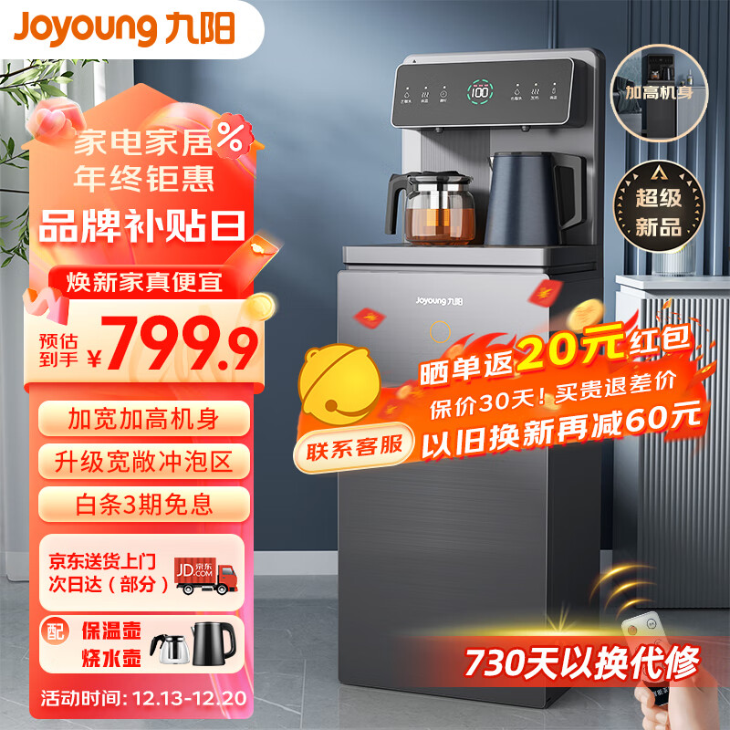 九阳(Joyoung)家用茶吧机智能遥控大屏下置水桶饮水机 双温双显双出水口 立式智能茶吧机温热款 【远航灰】价格:799.90元!
