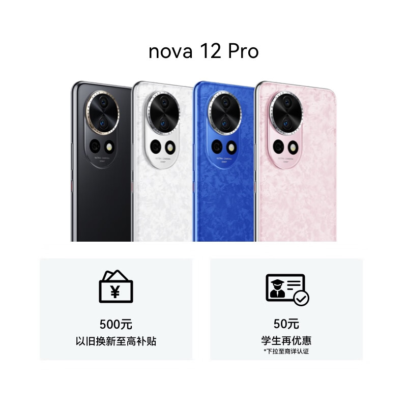 华为 nova 12 Pro 前置6000万人像追焦双摄 256GB 樱语粉 物理可变光圈鸿蒙智慧通信智能手机nova系列价格:3999.00元!