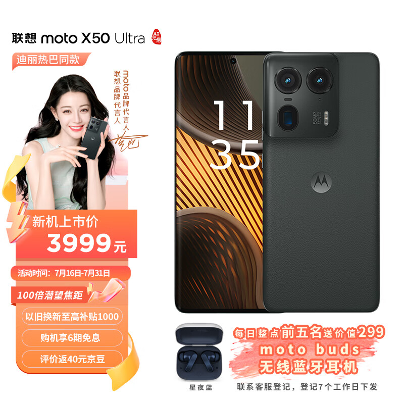 摩托罗拉 联想moto X50 Ultra 100倍潜望超级变焦 一体化机身 5G手机 AI元启版 12GB+256GB 远黛墨价格:3999.00元!