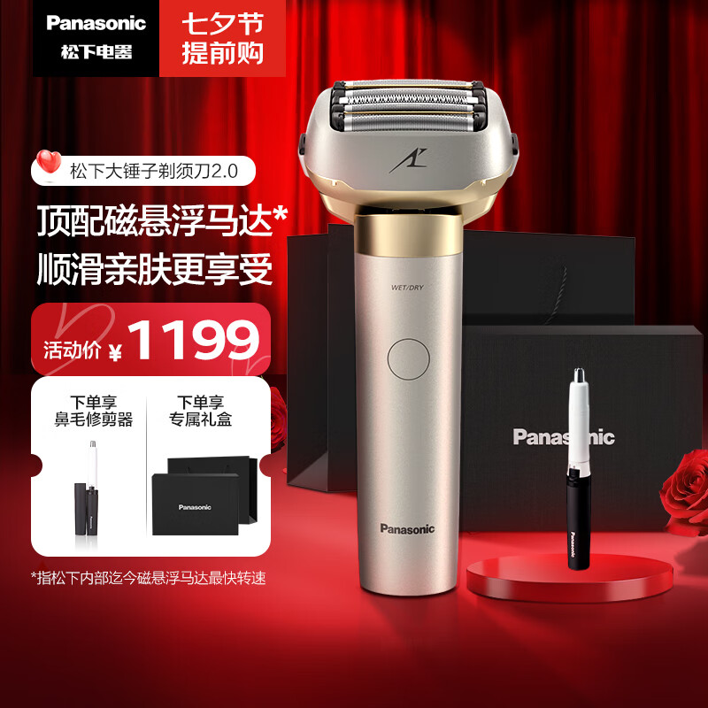 松下(Panasonic)大锤子2.0剃须刀刮胡刀电动往复式小锤子pro磁悬浮马达七夕情人节礼物送男友老公LM55灰价格:1199.00元!