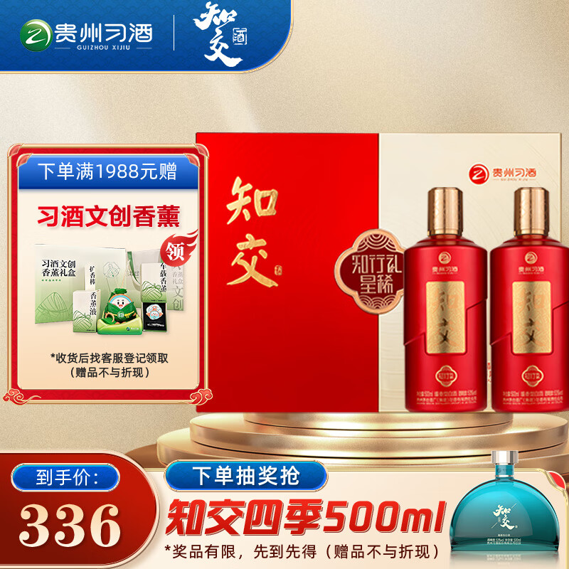习酒 知交 知行礼 星稀礼盒 酱香型白酒 53度 500ml*2 礼盒装价格:436.00元!
