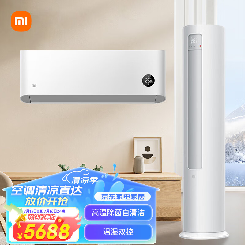 小米【巨省电套装一柜一挂】巨省电系列 2匹一级柜机+大1匹一级挂机 变频冷暖价格:5688.00元!