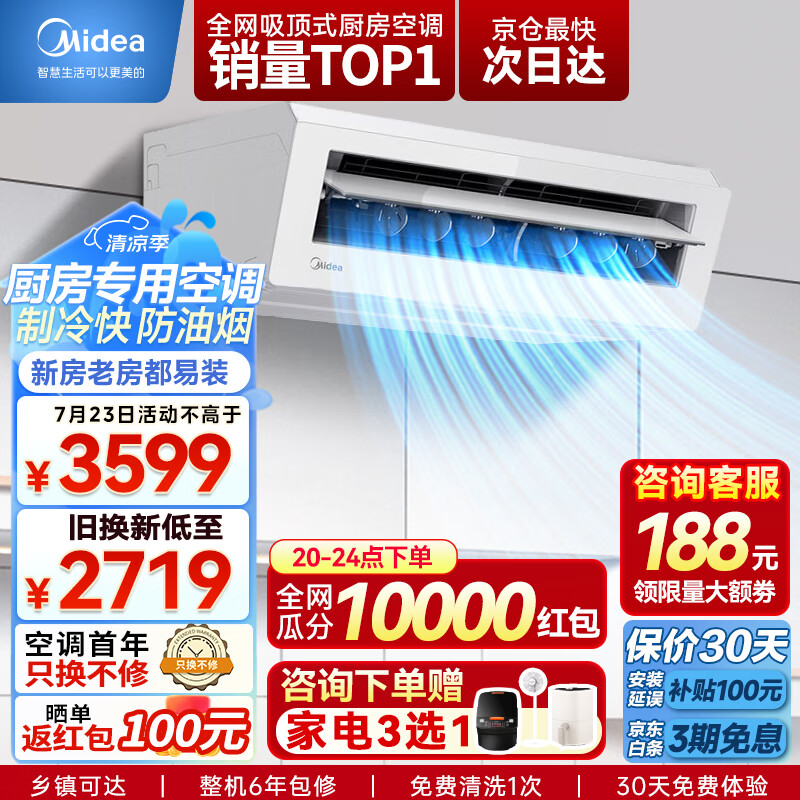 美的(Midea)小凉方 厨房空调 专用吸顶式 小1.5匹变频 防油烟 大冷量 易安装CKF-30XW/BN8Y-XD300【极地白】价格:3599.00元!