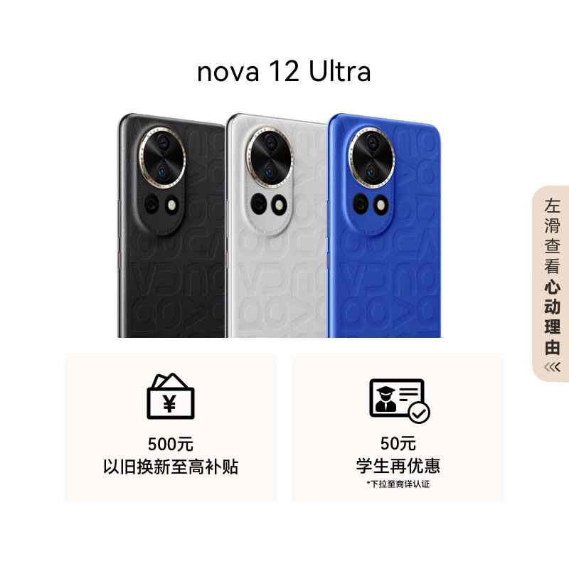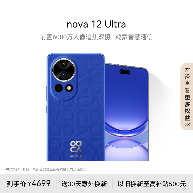 华为nova 12 Ultra 前置6000万人像追焦双摄 512GB 12号色 物理可变光圈 鸿蒙智慧通信华为智能手机价格:4699.00元!