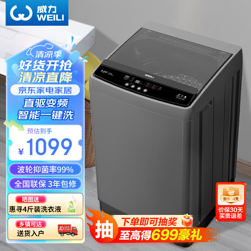 威力(WEILI)波轮洗衣机全自动 10公斤直驱变频 大容量智能模糊洗 一级能效洁桶风干(钛金灰)XQB100-1929D价格:1099.00元!