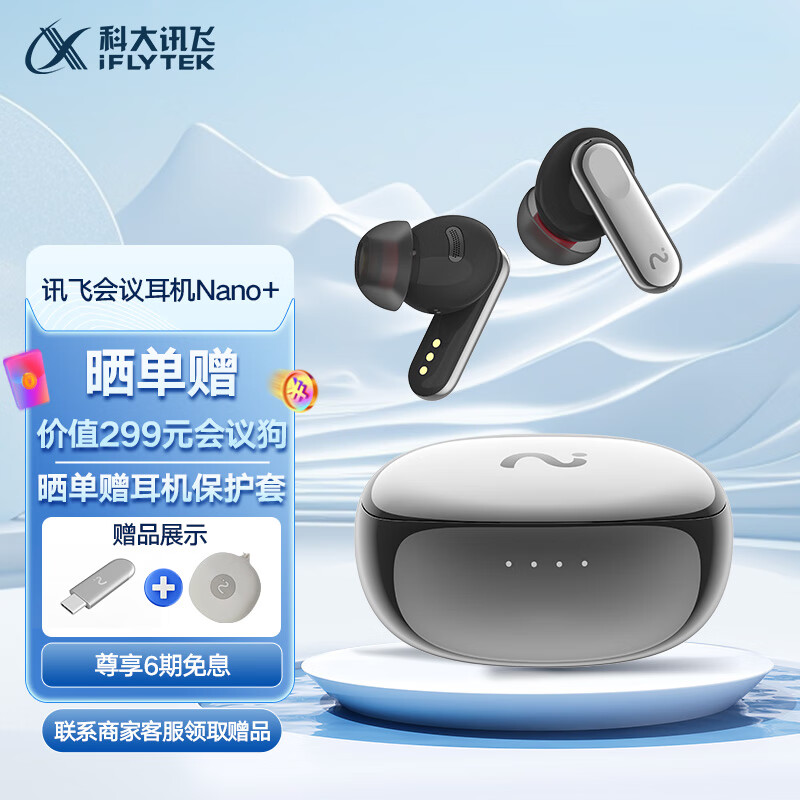 科大讯飞(iFLYTEK)录音降噪会议耳机Nano+ 无线蓝牙耳机 主动降噪 入耳式 超长续航 录音转文字 苹果华为通用价格:1199.00元!
